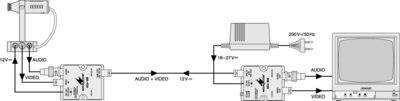 Strømforsyning til kameraet tilsluttes også overføres via koaksialkabel (12V DC current / 500mA)