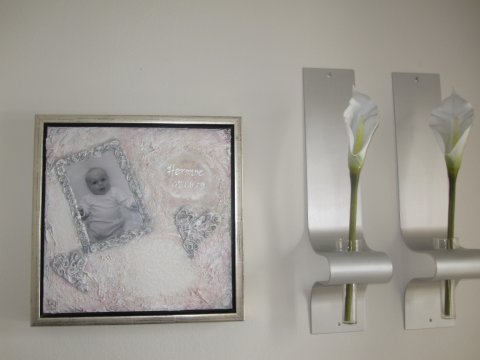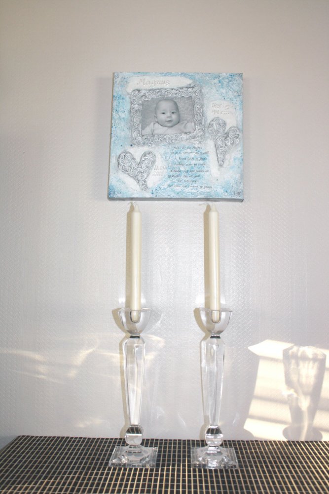 Maleriet på veggen er malt på bestilling, med foto av [...]datteren montert på lerretet. Dette er en variant av de personlige maleriene jeg lager :-)Les mer..↑ |  |