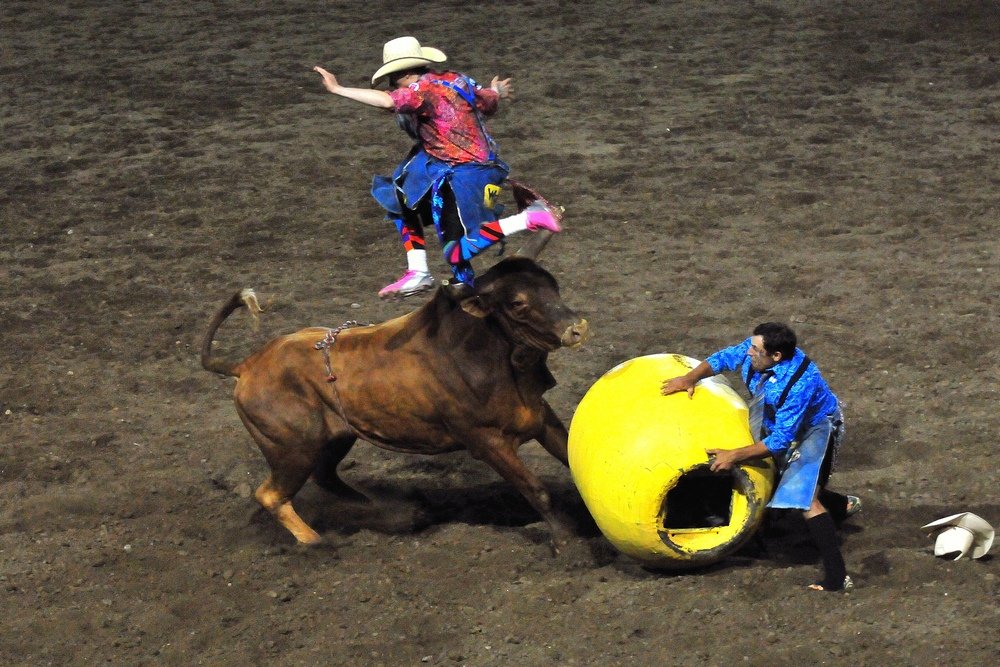 Byen Cody er den østlige port til Yellowstone. Den kendte Bufallo Bill med det borgerlige navn William F. Cody var med til at grundlægge byen i slutningen af 1800-tallet. Han etablerede bl.a. byens hotel “Irma”, som vist er opkaldt efter en af hans døtre. I dag er turisme naturligvis omdrejningspunktet i Cody, hvor der hver aften er et lille cowboyshow på gaden udenfor Irma. Lokale aktører spiller rollerne som nogle af det vilde vestens skurke og helte i et optrin, som naturligvis indeholder en bank, en bar og et fængsel.  Vi så show’et, som i parentes bemærket ikke var det helt vilde (vesten !). Det var til gengæld det efterfølgende rodeo, hvor vi om aftenen så et flot show med ryttere, som fanger og binder kalve - det tager cirka 15 sekunder alt inklusive - speedriding på heste rundt om tre tønder og sidst men ikke mindst heste- og tyreridning, hvor det drejer sig om at holde sig længst muligt på dyrene. Sådan et rodeoshow er ærke amerikansk. Ryttere rider ind med Stars and Stripes, vi be’r allesammen en bøn for ryttere og dyr, at ingen vil komme til skade, og til slut står vi alle og synger med på nationalhymnen, medens en udvalgt rytter får æren af at ride rundt i arenaen med det amerikanske flag. Et show varer to timer, og man bliver godt underholdt undervejs. Det er bestemt ikke lokale amatørryttere, man oplever sådan en aften, men derimod seriøse proffer, som stort set lever af deres evner på ryggen af en hest eller tyr. Det er muligt, at de sådan en aften kun er i arenaen i få sekunder, men bag deres præstationer ligger masser af hård træning. Vi sad, så vi kunne se, hvorledes de forberede sig, både mentalt og rent praktisk med at gøre udstyret klar. De bedste aktører sådan en aften indkasserer i øvrigt også pengepræmier, så det er bestemt ikke kun for sjov, at de sætter sig på ryggen af vilde heste og tyre.