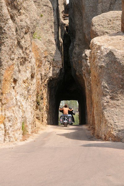 I planerne for området indgår også at skabe et helt samfund med hospital, museum over indianernes historie, universitet og meget mere.  Fra Crazy Horse gik turen videre af Needles Highway, som er en smuk tur, der snor sig op gennem bjergene, hvor sælsomme klippeformationer står som nåle i landskabet - et par stykker sågar med nåleøjne skabt af vejr og vind. Undervejs kører man gennem flere tunneller, som kun kan passeres i ét spor - sjovt og spændende.