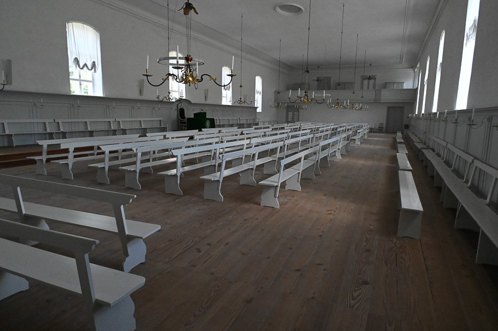 Det enkle og simple finder man også på kirkegården, Gudsageren, hvor alle gravsten er ens, og hvor der ikke findes familiegravsteder. Her er kvinderne begravet mod øst og mændene mod vest. Alle gravsten er nummererede, fra nummer 1 i 1773 til nummer 2052, som er lagt i 2021.