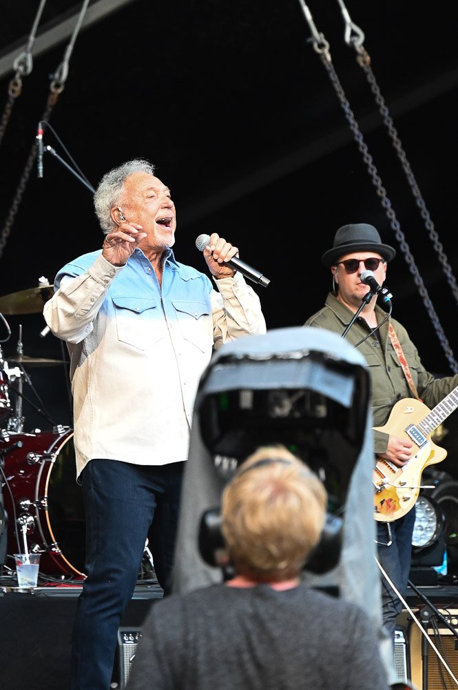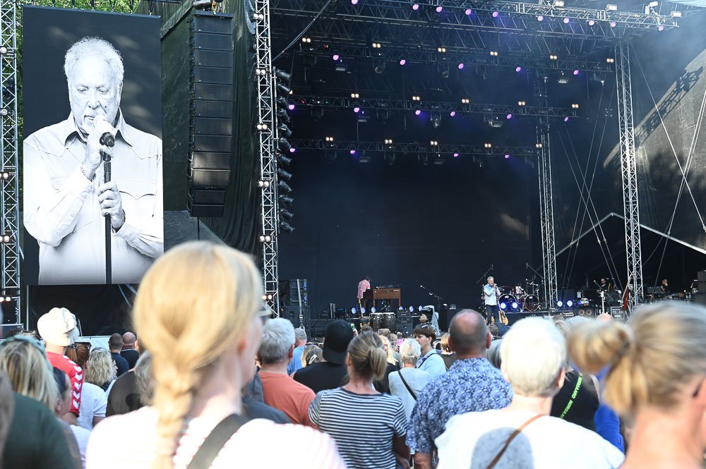 Torsdag morgen bød jeg ind på en Nibe-billet, som jeg fik, og så gik turen ellers mod Sildebyen, hvor vi traditionen tro er nogle stykker, som samles hos gode venner, der bor i byen. Der blev hygget og snakket i haven, inden jeg satte kursen mod festivalpladsen. Lidt før de andre, de jeg af erfaring ved, at jeg skal stoppe mange gange for at snakke med elever fra mit 30 år lange liv som efterskolelærer. Således også i år, hvor jeg både mødte elever fra mit første HCI-hold og fra mit sidste, som sluttede i lørdags, hvor jeg også stoppede på skolen. Det er altid hyggeligt at hilse på, og de gamle elever er søde og glade. Ind imellem sætter jeg dog blikket på “uendeligt”, så jeg også har en mulighed for at nå frem til de aftaler, jeg har med mine venner… På torsdagens program havde jeg set frem til at høre Jung, som jeg længe har tænkt bliver det næste store danske band. Bevares de er allerede store og er brugt meget i medierne, men det var alligevel som om, at den store scene på Nibe ikke passede til dem. De nåede ikke for alvor ud over rampen og havde nok passet bedre på den Blå Scene i teltet under lidt mere intime former. Intet mindre end stor scene kunne naturligvis gøre det, da walisiske Tom Jones gik på lige efter aftensmaden. Det er ikke en mand, der står i min pladesamling, men når man er vokset op med musik op gennem 60’erne og 70’erne kender man naturligvis godt manden med de mange hits, ikke mindst Delilah. Mine umiddelbare tanker forud for koncerten var nok, om det var et smart managment, som havde sendt den 82 årige mand på turne for ussel mammons skyld. Mine tanker blev gjort til skamme fra første strofe. Stemmetøjet fejler bestemt ikke noget, medens bentøjet var lidt mere usikkert, hvilket vel ikke kan overraske. Ganske befriende startede Tom Jones ud med “I’m getting old” og Dylan-sangen “It ain’t dark yet”. Selverkendelse fra en herre, som har prøvet det meste i showbizz. Koncerten bød på alle de store hits - mange med et tvist i rytme og fortolkning, hvilket klædte Tom Jones og hans velspillende band. Der var stille ballader, store pophymner og rock’n roll. Altsammen leveret professionelt og med en stemme, som ikke svigtede. En positiv overraskelse…