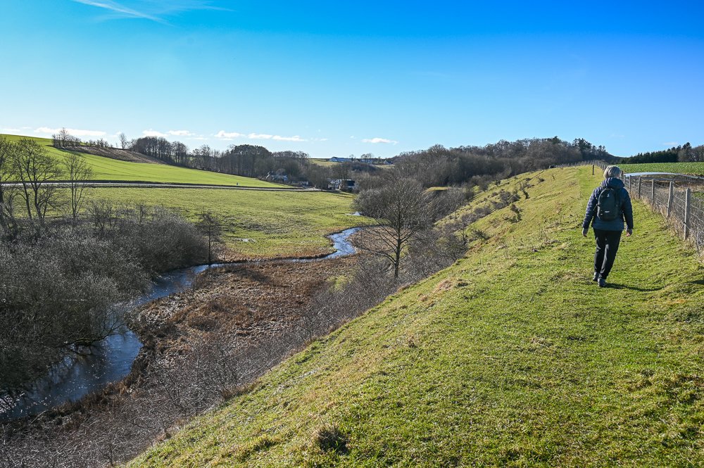 Turen til Uldum blev i øvrigt kombineret med et besøg hos gamle HCI-kolleger, Eva og Lars i Jelling. De er gået på pension efter en lang årrække som forstandere på VandetlEfterskole. Det blev til en super hyggelig fredag med snak og minder, golf, god mad og vin og et ophold på “værelse 301” med eget bad i gæsteafdelingen.. Hjemturen lørdag gik så lige forbi Nørre Snede, hvor en anden gammel efterskolekollega, Poul, bor. Han var på HCI, da jeg i sin tid var i praktik på skolen, som var i gang med sit første år. Her blev kimen lagt til arbejdet i efterskolen. Jeg blev senere kollega med Poul på Horne Ungdomsskole i et år og kom så selv til HCI, hvor jeg arbejdede i 28 år, indtil jeg stoppede i sommeren 2022. Det blev i sandhed en tur ned af A13 og mindernes allé. Kalk og pigtråd20-02-2024  Lørdag blev brugt til en vandretur i det nærmest forårsagtige vejr. Turen gik til Vokslev Kalkgrav og Huul Mølle lige uden for Nibe. Vi parkerede ved den gamle vandmølle, som man kan besøge og bese såvel udefra som indefra. Lyden af rislende vand er beroligende og smuk, og når så solen varmer ovenpå en periode med sne, kulde og regn, kan man kun blive i godt humør. Huul Mølle ligger ved Binderup Å, hvor man gennem århundreder har udnyttet vandkraften. Som noget typisk himmerlandsk har den to mølledamme, hvor man kunne opstemme i den øverste dam og udnytte vandkraften i den nederste dam. Mølledammene blev genskabt i 2010. Møllen var både en kornmølle og en stampemølle, og senere blev møllen også udnyttet til at generere elektricitet, så vandstrøm bogstavelig talt blev lavet om til elektrisk strøm.