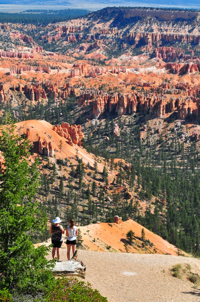 Vi valgte at køre ind i parken for at få lidt af aftenlyset med - derfor satte vi kursen mod Sunset Point. Herfra gik jeg sammen med Thomas og Morten en tur ned i dalen, medens Hedvig og Cody valgte at blive oppe på kanten og nyde synet af de imponerende røde Hoodos, som man kalder de røde klippesøjler i Bryce.