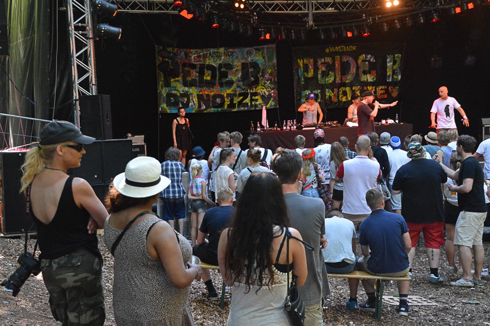 En anden målgruppe for festivalen er så det mere voksne publikum. Småbørnsforældre, som har sendt børnene i pleje hos bedsteforældrene, og så os, der er lidt ældre, som har større børn. Nogle er på Nibe, andre er fløjet videre til Roskilde.