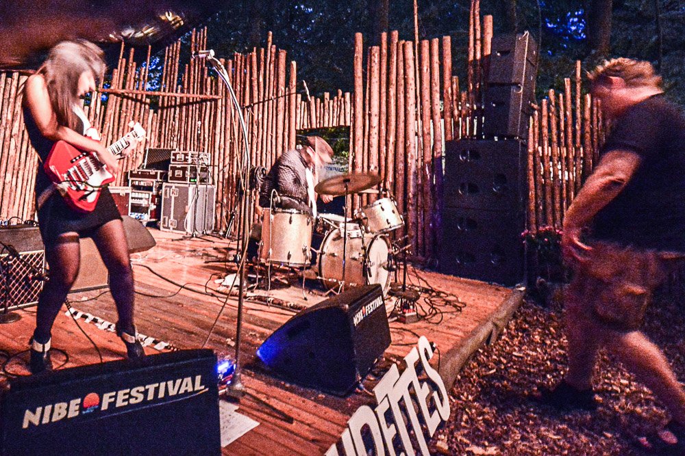 Det er også de kendte hits, som står på menuen, da Kim Larsen går på scenen, og sætter sig på en rød stol, midt på aftenen. Den gamle Gasolin-sanger har et kolossalt bagkatalog og formår altid at sætte et godt sæt sammen. Denne aften er dog ikke den bedste i mine ører - jeg har hørt ham bedre - men han formår at skabe en god fest. Desværre må jeg erkende, at jeg ikke har stor respekt for manden letkøbte holdninger og ideer. For eksempel er det hyklerisk, at manden hårdnakket forlanger Tuborg-reklamer foran scenen pillet ned eller tildækket, før han går på. Samtidig gør manden, hvad han kan for at promovere tobaksindustrien. Latterligt. I øvrigt er det jo netop koncertarrangørerne, som sørger for at betale Larsen de ganske store summer, han skal have for at gå på scenen. Der skal indtægter til - fra publikum og sponsorer, og så skal man finde sig i sådan en krukke…. Aftenens sidste, og helt store oplevelse, får jeg, på min vej væk fra Hestepladsen. Fra scenen i oasen Den Lille Fede, lyder heftige rockriffs, som trækker mig indenfor. På scenen står en sorthåret kvinde med en rød guitar, og ved siden af hende sidder en mand med lange bakkenbarter ved et trommesæt. Et hjemmelavet skilt ved scenekanten fortæller, at her spiller The Courettes. Det brasiliansk-danske ægtepar, som udgør gruppen, spiller en herlig gang primitiv punkrock med klare overtoner af bl.a. Kinks, Nina Hagen og White Stripes. De kraftige guitarriffs og den forvrængede fuzzlyd kombineret med energisk trommespil bliver leveret med spilleglæde og dynamik. En mavepumper af de helt store til os, som ser og lytter med, og vi er flere, som lover hinanden at være tilbage den følgende aften, hvor duoen igen går på scenen.