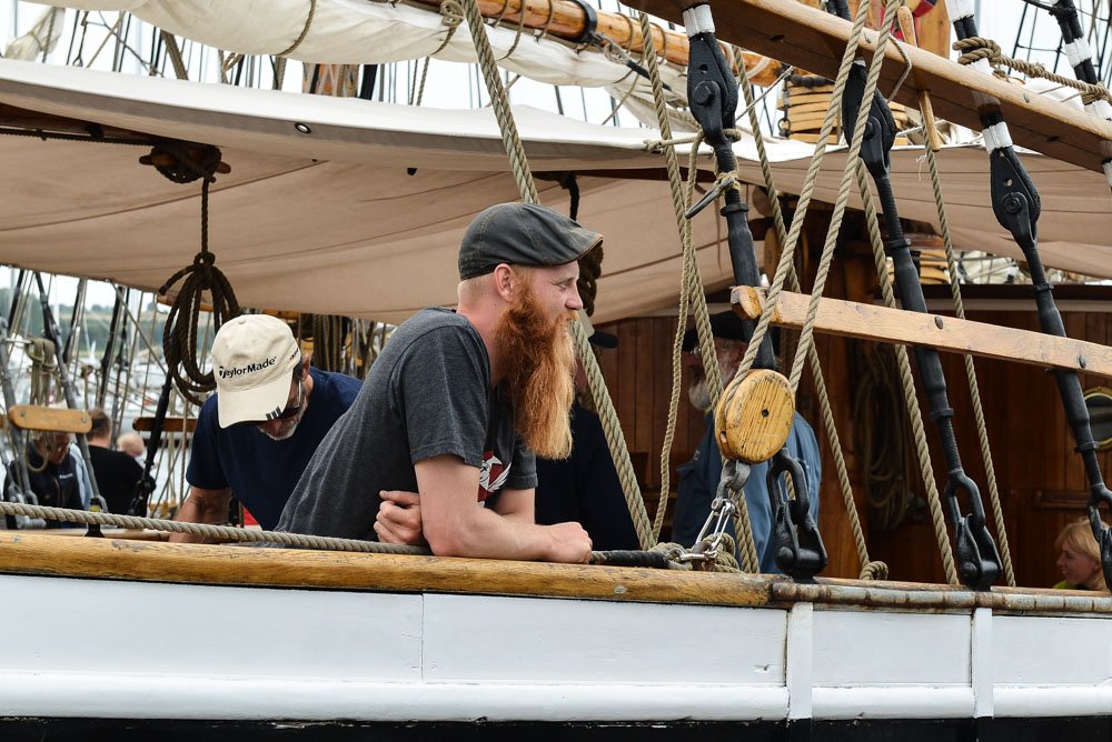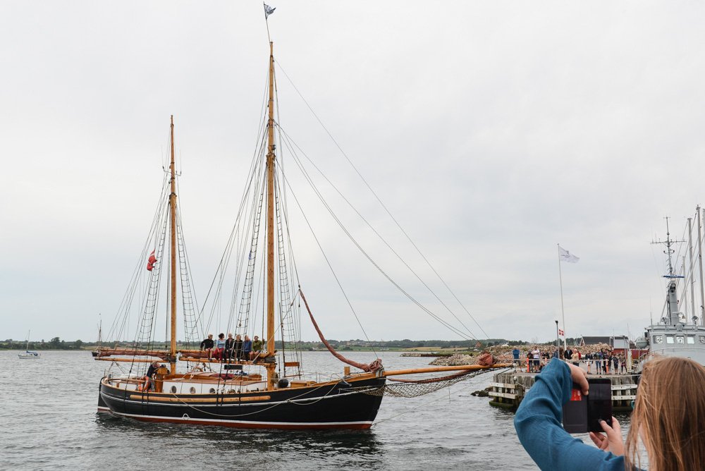 Vi var på havnen, da skibene et for et gled ind gennem havneindløbet for efterfølgende at blive “pakket” godt inde i havnen, så alle kunne være der. En frisk skipper sad på sit store træskib og fortalte om de forskellige skibe, hilste på besætningerne og sågar brød ud i sang, da en kvindelig skipper ved roret på “Tøsebåden” havde fødselsdag. Vi fik også et glimt af aalborgensiske Loa med himmerlandske Leif i besætningen - det er dog ikke ham på billedet herunder!