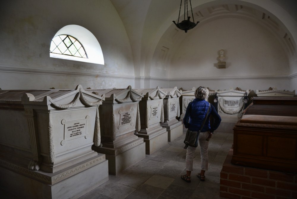 Greven, som ejede kirken, opførte så et kapel, hvor hans forgængere og han selv og hans tre hustruer ligger begravet i sarkofager.