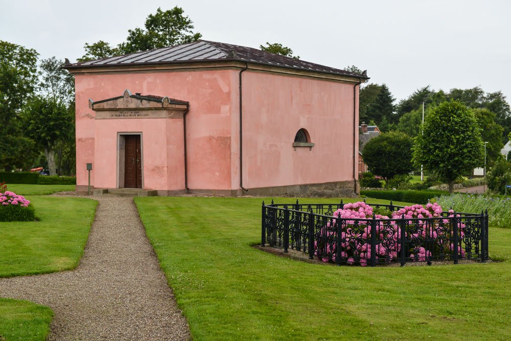 Greven, som ejede kirken, opførte så et kapel, hvor hans forgængere og han selv og hans tre hustruer ligger begravet i sarkofager.