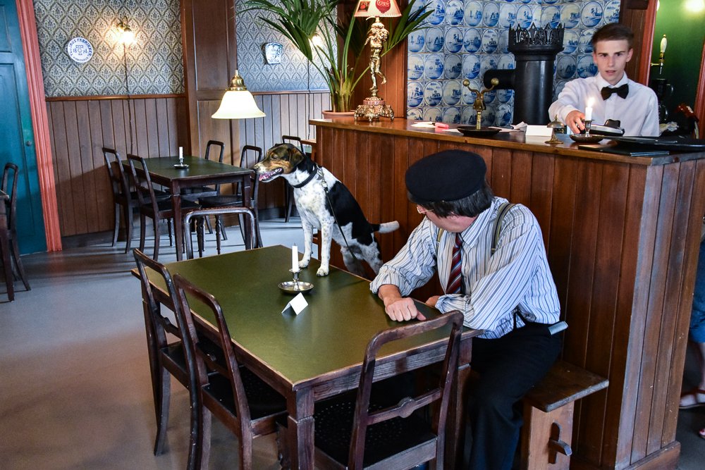 På stampladsen i Jernbanehotellet sidder grisehandler Oluf Larsen med sin hund, Kvik, som naturligvis gerne underholder med sit lille stunt, hvor den ikke spiser frikadellen, når det er en “tysker”, men gerne, når det er en “dansker”.