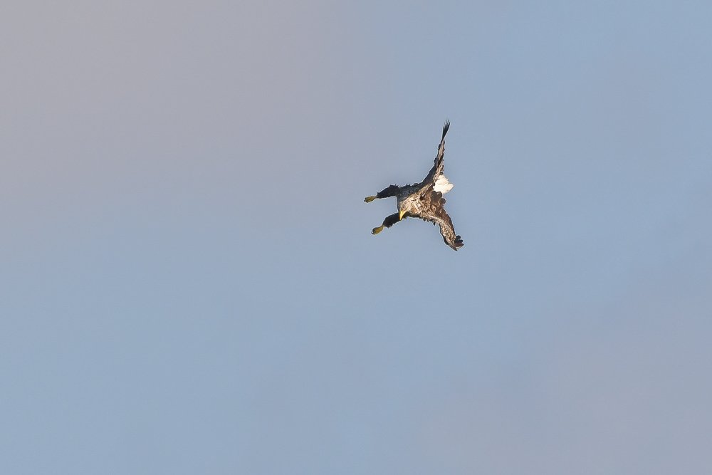 Jeg har flere gange været ved søen og forgæves kigget op for at få et glimt af den store flyver. Indtil i år, hvor jeg har mødt den to gange. Første gang var den lidt langt væk, men jeg valgte at tage et par såkaldte “doku-skud”, så jeg hjemme på computeren kunne tjekke, om det nu også var den eftertragtede ørn, jeg havde fået i søgeren.