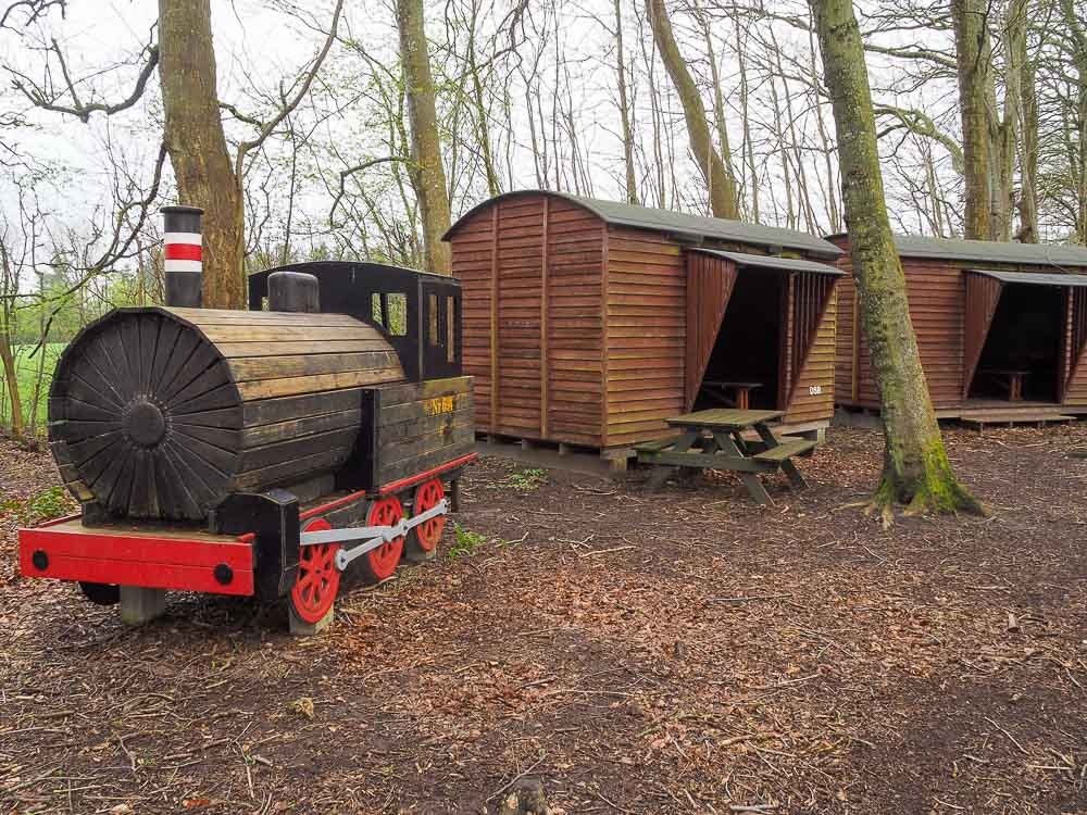 Udgangspunktet for dagens tur var “Naturrummet” på banearealet ved den gamle station, som i dag er privat beboelse. På området er der madpakkehus, legeplads, blomsterbede og shelters, der er indrettet i noget, der har form som gamle togvogne, komplet med et gammelt lokomotiv foran. Flot og funktionelt til både overnatning, læ og leg.