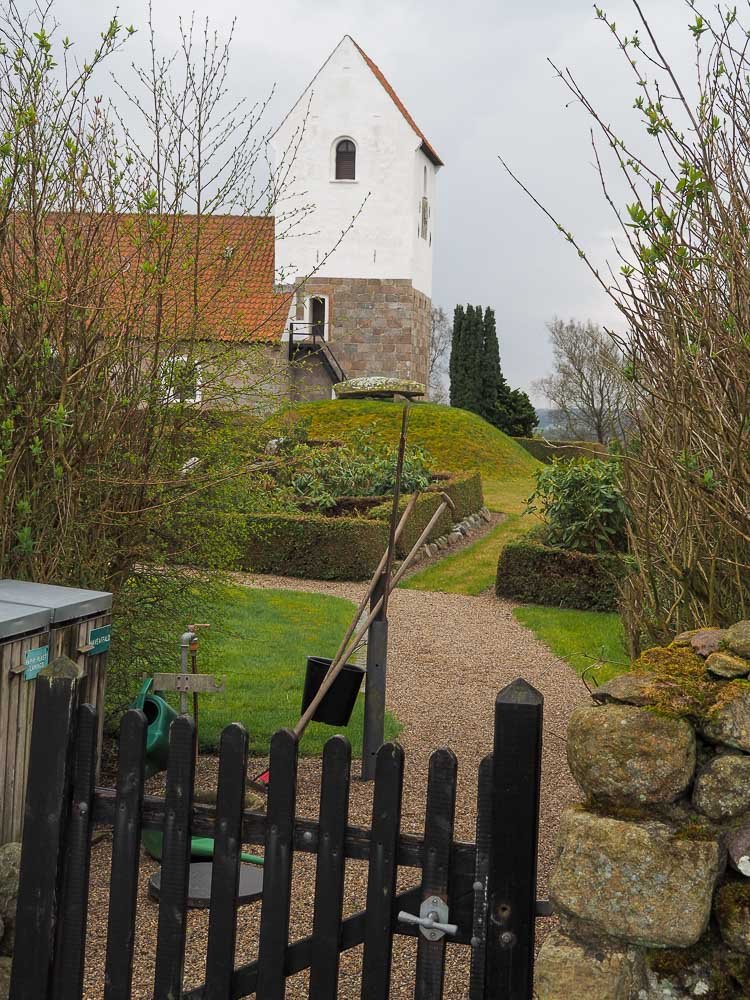 Vi slutter lige overfor kirken, hvor der ligger et gammelt transformatortårn, som er indrettet til udsigtstårn - det ser dog ikke ud til at blive holdt ved lige, da jeg måtte træde over gamle grene og andet på vej op af trappen for at nyde udsigten over det regnfulde landskab denne aprilmandag.