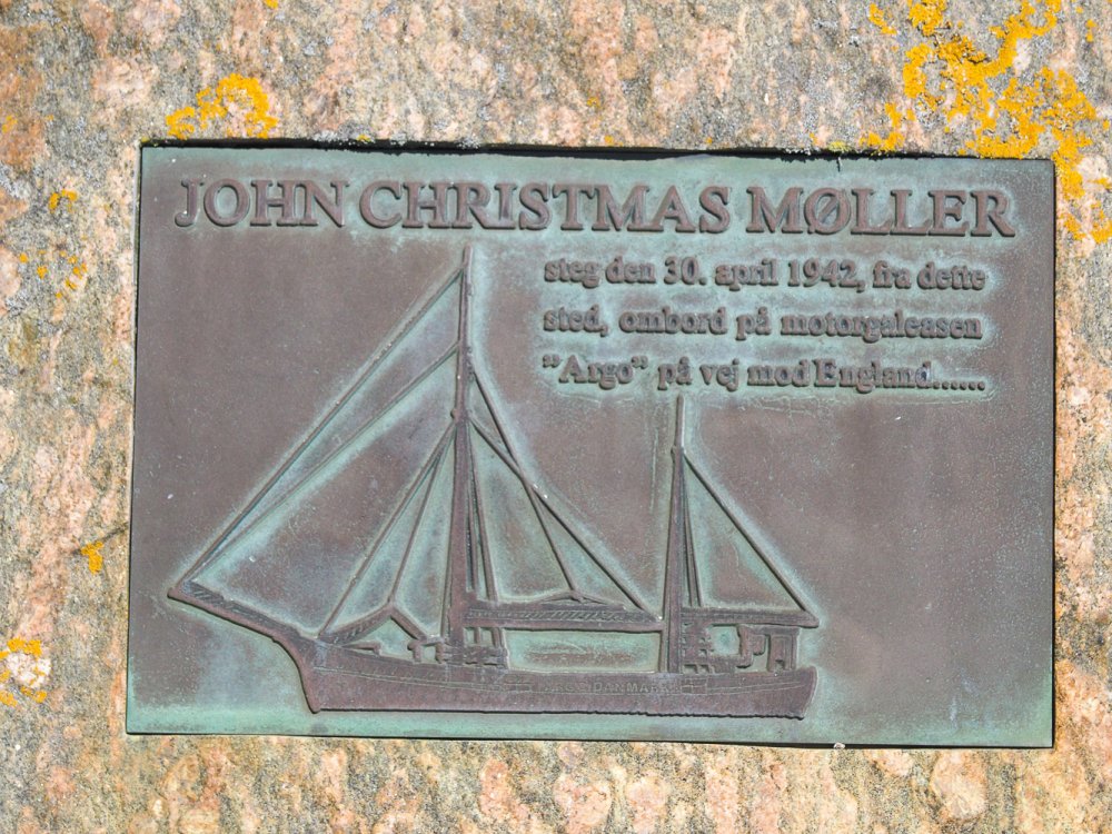 Der er en lille havn her på sydsiden og lidt længere mod vest ligger en havn ved kalkværket. Ved nedkørslen til den står en mindesten over den konservative politikerJohn Christmas Møller, som under besættelsen blev den danske stemme i London. Før han kom til den engelske hovedstad, måtte han flygte fra Danmark til Sverige. Det foregik den 30. april 1942 med galeasen Argo, som sejlede kridt til Sverige. Nede i lastrummet var der bygget et rum, hvor Christmas Møller, hans kone og søn kunne skjule sig, til de var i sikkerhed. Den 14. maj holdt han sin første radiotale fra London.