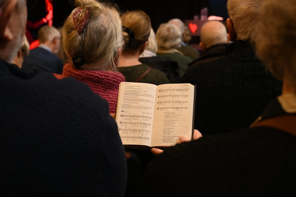 Lørdag var der så højskoledag på Uldum, hvor man bl.a. inviterer jubilæumsårgangene. Vi var kun en håndfuld fra min årgang, men vi hyggede, snakkede, sang, drak kaffe i spandevis og så på gamle fotos, højskoleblade, som vi selv havde lavet, og meget andet. Desuden var der et meget interessant foredrag med forfatteren Dy Plambeck, som har været med til at redigere den nye udgave af Højskolesangbogen, som vi naturligvis sang fra - bl.a. Folkeklubbens “Danmarksfilm” og et par flotte sange ad Dy Plambeck.