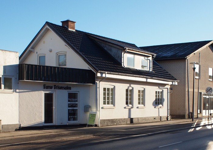 Mellembygningen ind mod hotellet rummer i dag herrefrisør, som det fremgår af dette billede. Det er taget fra nogenlunde samme vinkel som billedet i bloggen om fru Armanns pølsebod.
