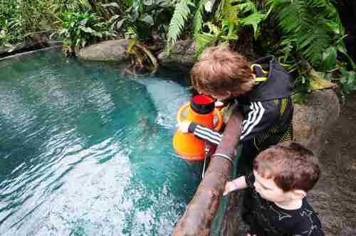 Vi indledte i Randers Regnskov, hvor der er nok at se på, og hvor de kolde temperaturer udenfor er afløst af behagelig - og til tider næsten ubehagelig - tropevarme blandt masser af grønne planter og farvestrålende eksotiske dyr. Har man sit kamera med, er det ikke så smart, hvis udstyret har ligget bag i en kold bil hele vejen til Randers. Det betyder nemlig dug på frontlinsen, når man bevæger sig fra kulden til varmen. Problemet aftager dog, som tiden går, og udstyret får samme temperatur, som omgivelserne. Men dug kombineret med forholdsvis dårlige lysforhold sådan en grå februardag gjorde det dog mere end svært at få noget ordentligt i kassen.