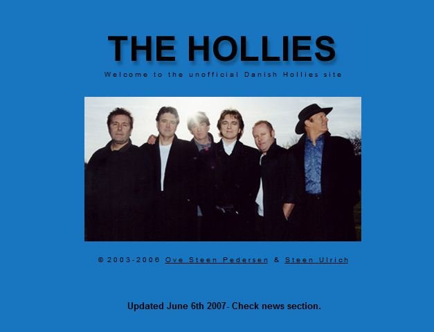 Et af hans store musikalske forbilleder er The Hollies, som var store i 1960’erne og 1970’erne. Faktisk har Ove lavet en hjemmeside (klik på billedet herunder), som er dedikeret til den engelske gruppe med de flotte vokalharmonier.
