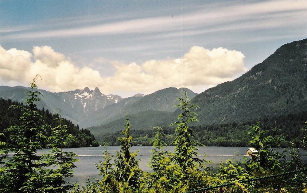 Lørdag d. 20 juli 2002Familien havde fri så vi tog på tur rundt i byen og ud i naturen. Oppe i bjergene besøgte vi søen, hvorfra Vancouver får sit drikkevand. Vi så et lakse-klækkeri ved de flotte elve i skovene. Det var vildt flot heroppe. Tree-Top Walking skulle vi også prøve og det blev også til en tur over den lange hængebro. Bjergene husede kendte skiområder - lifterne var der, men sneen manglede. Herfra havde vi en imponerende udsigt ned over byen og indsejlingen fra Stillehavet. En dejlig afslappende dag sluttede med Fish'n'Chips og en is på MCD.