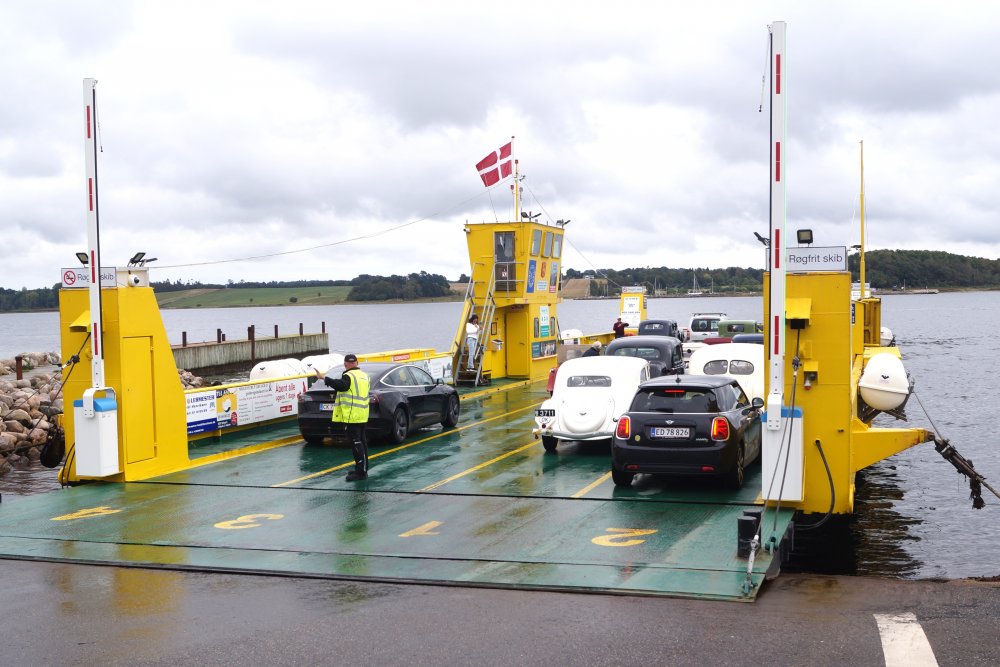 Den lille færge-pram havde besøg af en flok veteranbiler.