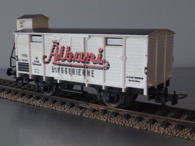 Denne Albani.vogn fra Liliput er en decideret klassiker. Den er baseret på en tysk G 02-vogn med bremsehus, hvilket ikke har hindret dens popularitet.