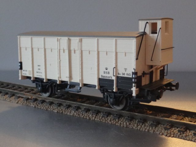 Smuk kølevogn fra hobby trade med mange detaljer. med højrevendt litrering som i epoke II. Fine påskrifter, vognkassen er malet i brækket hvid farve, hvilket ser overbevisende ud. Håndbøjler er monteret. Fuldstændigt intakt vogn.