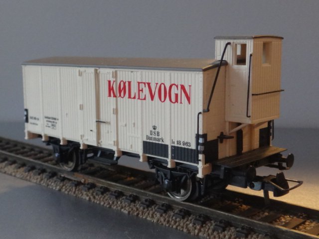 Klassisk kølevognmed bremsehus, rød påskrift. Flotte detaljer hele vejen rundt, diskret lakering i brækket hvid, En af hobby trades typiske modeller.