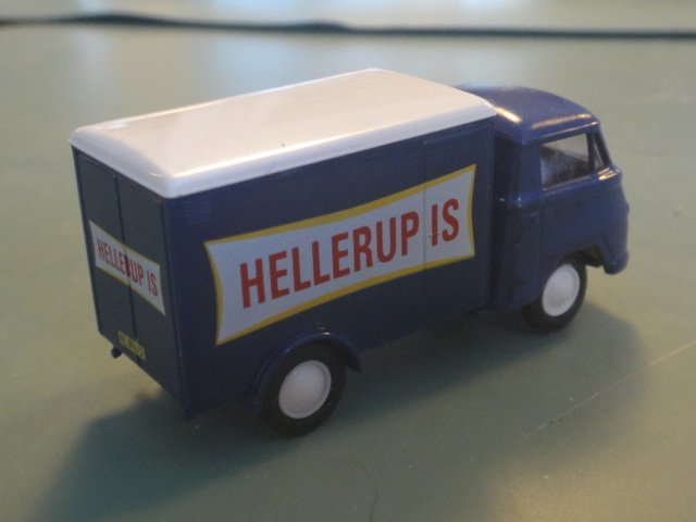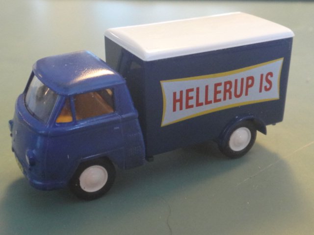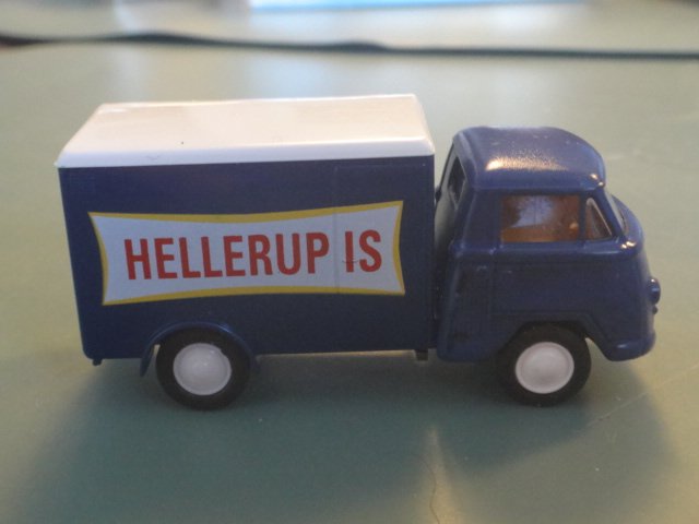 Model af Hellerup Isbil, anden sortering. Små, ikke så påfaldende fejl, men mangler påtryk på dørene. Med nummerplader.