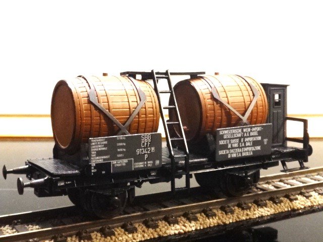 Flot vogn med to vinfade af 'træ' og mange detaljer. Vognen er udstyret med bremsehus og er hjemmehørende hos SBB_CFF (Schweiz). Vognen har god vægt, er letløbende og har relativt spinkle puffere. På hver side to tavler med omfattende tekst ppå tre sprog - tysk, fransk og italiensk. Undervoignen har NERM-skakt til kortkoblinger. Produceret af Sachsenmodelle. I originalkarton.