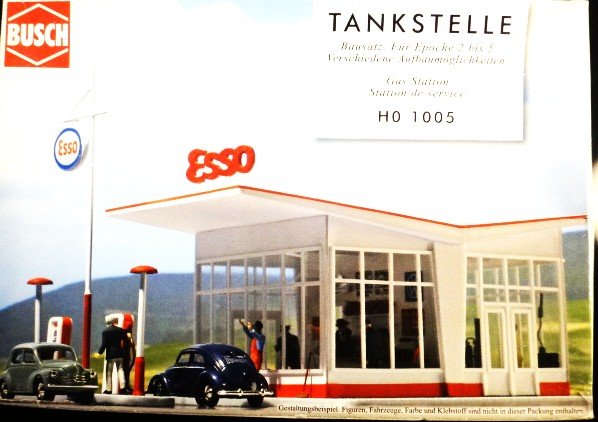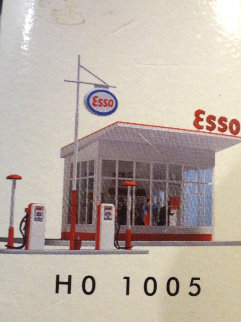Typisk Esso-tankstation fra cirka 1960, hvor stilen var amerikansk og tydeligt inspireret af moderne jetfly, iblandet lidt funkis-flair: Hvid bygning med store glaspartier og typiske Esso-detaljer så som pumper, skilt og de særlige lygtepæle.