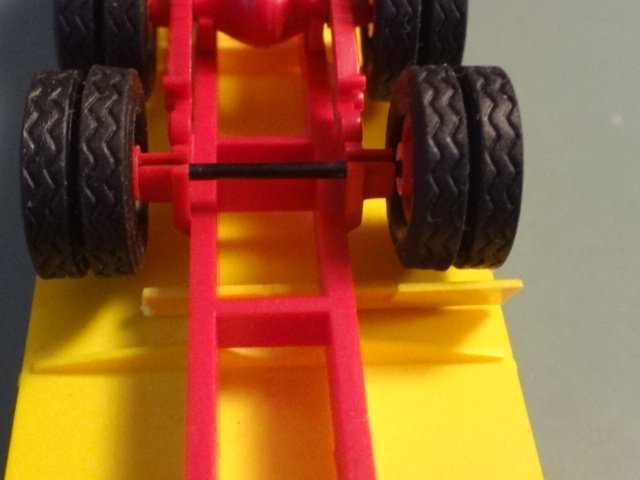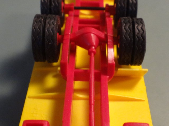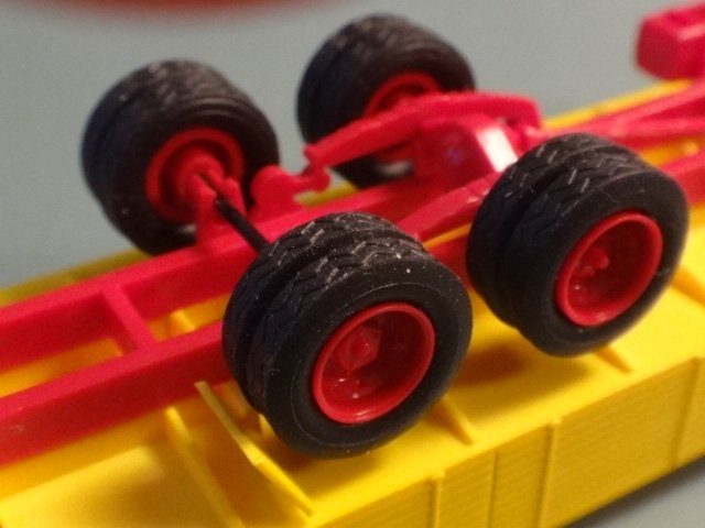 Modelen er ikke helt perfelt: Der mangler to skærme til bagakslerne, men der er vedlagt et plaststøbning med tre skærme (dog i hvid plast - de burde have været gule). Endvidere mangler plejlstængerne forrest, og der er ingewn emballage.