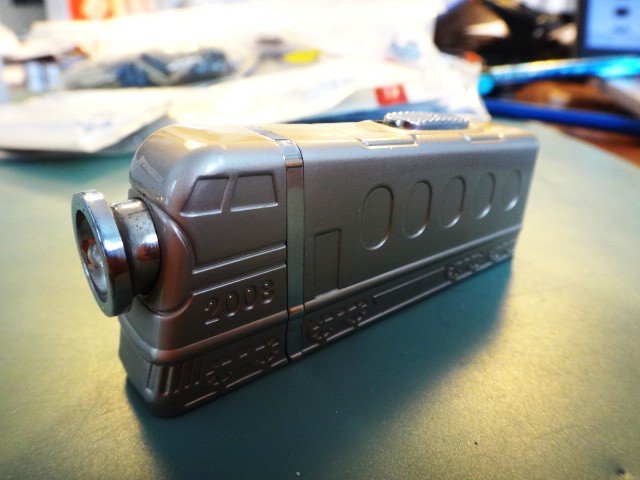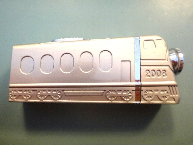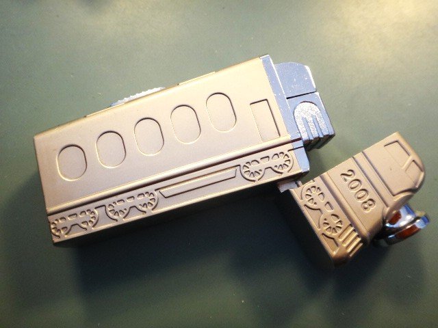 Sølvskinnende lighter i form af et US-diesellokomoitiv. Med diode-lanterne, som måske kan virke igen der må være et batteri i lighteren, som virker, hvis der kommer nu gas på. Gedigen, tung lighter, der vil vække opsigt.
