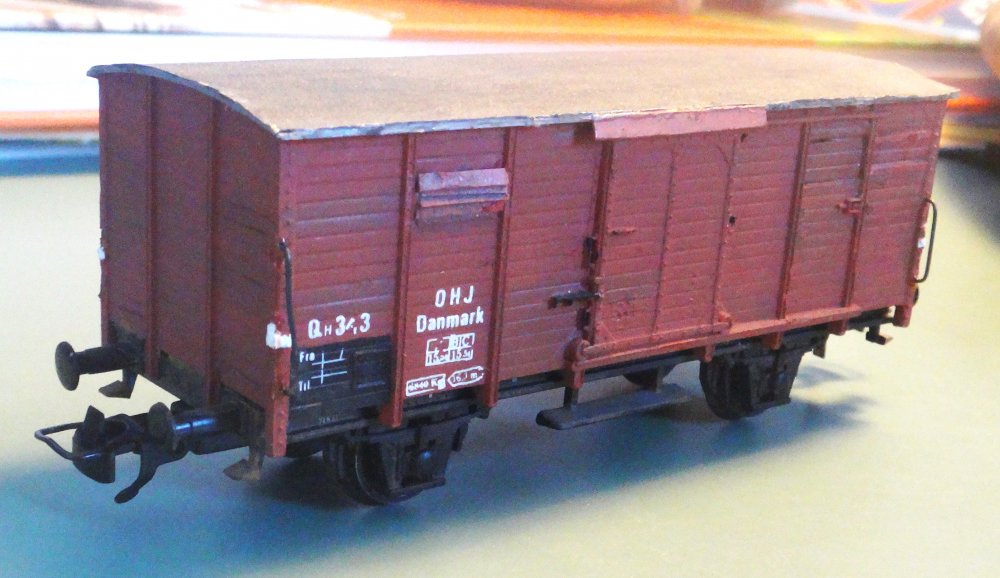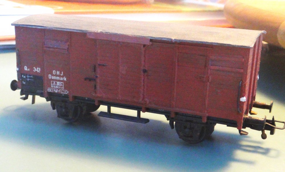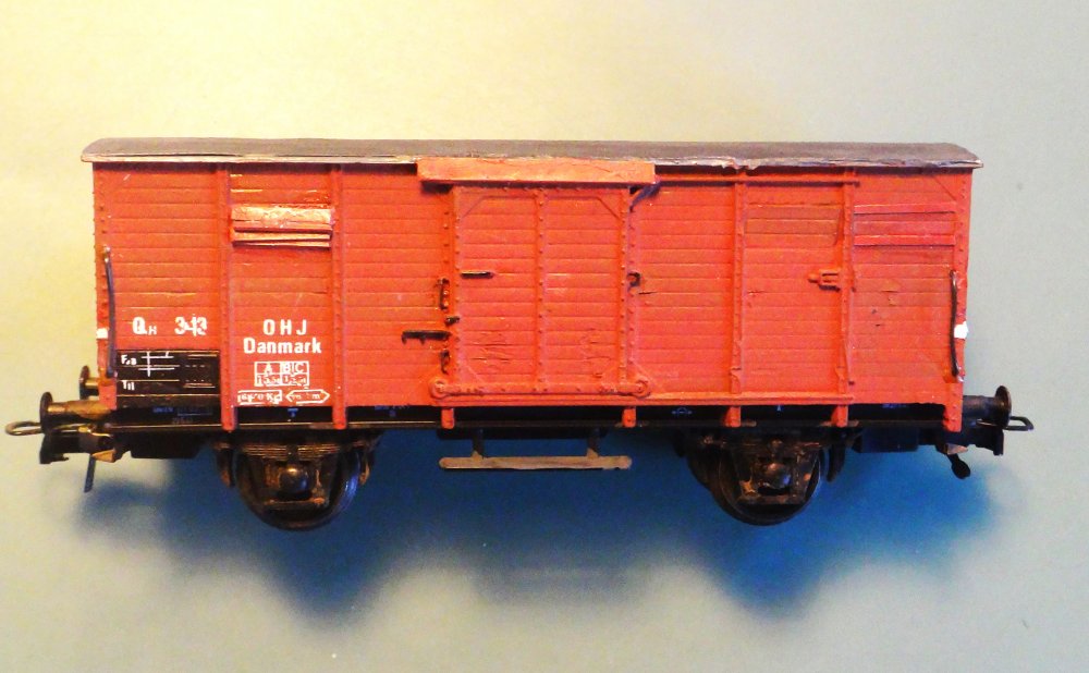 Ommalet og omlitreret Piko-godsvogn til OHJ QH 343 Vognen er baseret på Pikos nyere model af G 10 med kk-kulisser og gode hjul.