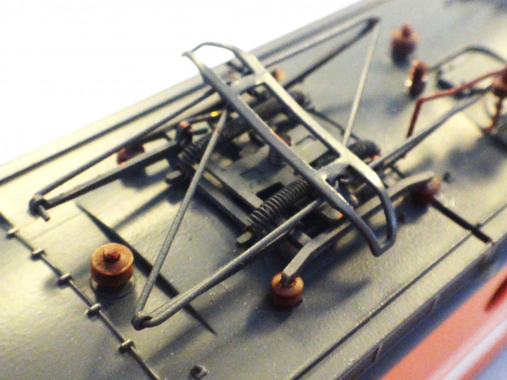 Mange detaljer på taget, fine, spinkle pantografer, fin overdel med skarpe påtryk og detaljerede bogier. Et par isolatorer med kabelforbindelse er knækket af, men er vedlagt..