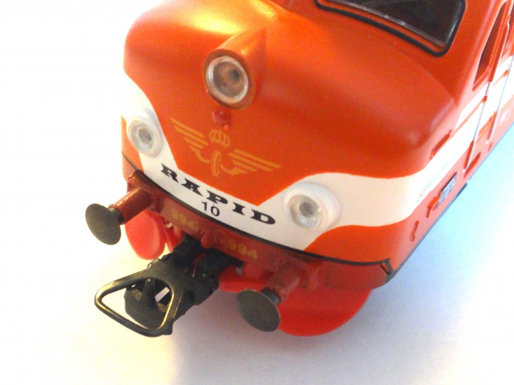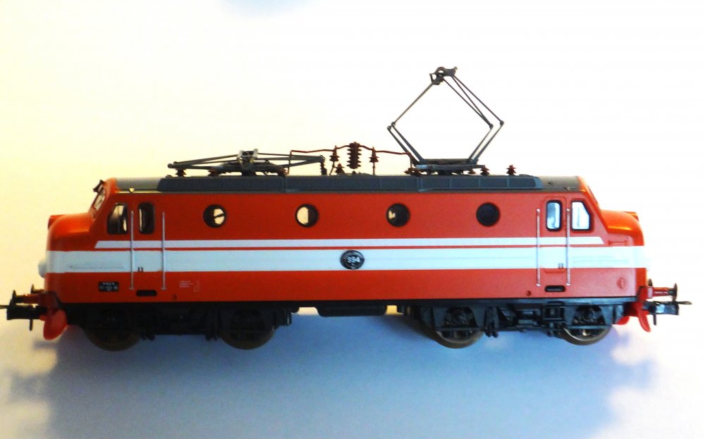 Pæn model, men ældre konstruktion uden NEM-stik til dekoder. Med den gamle Lima-motor - uopslidelig, men ikke lydløs. Med lysskift for/bag med glædepærer.