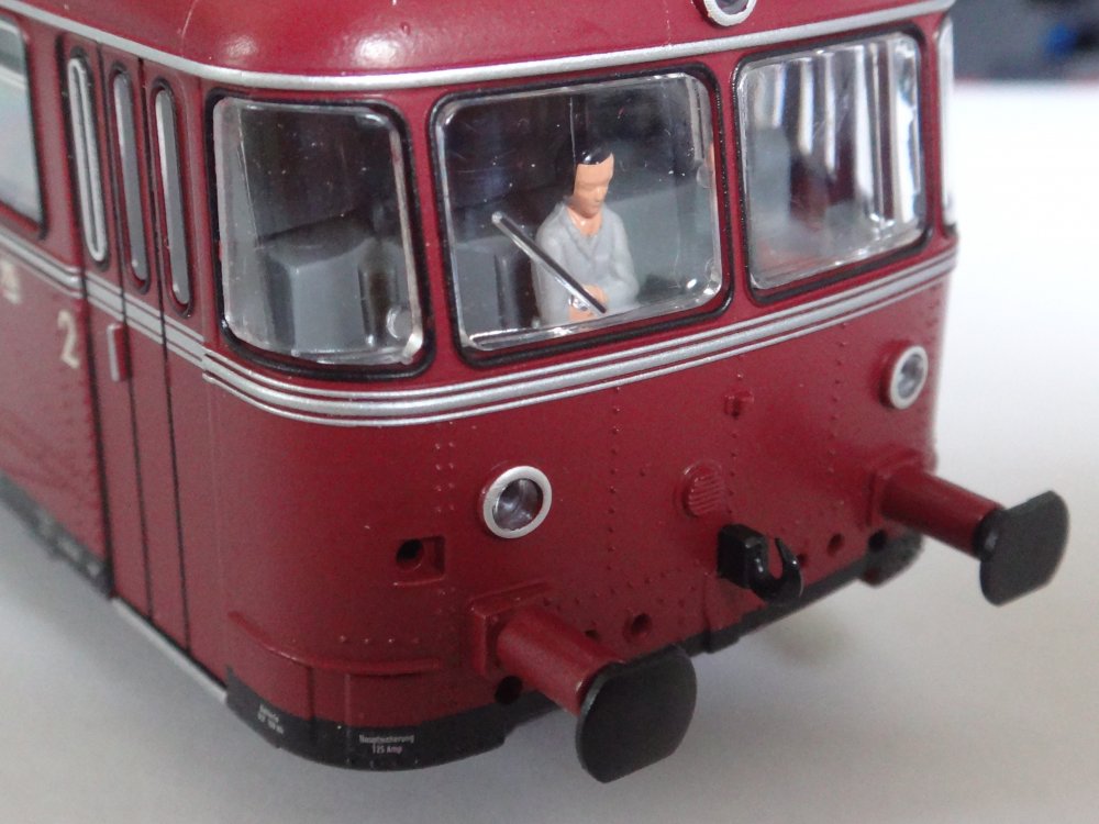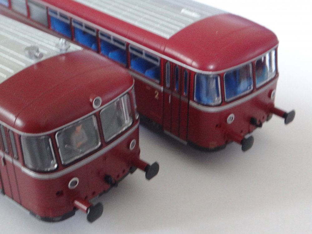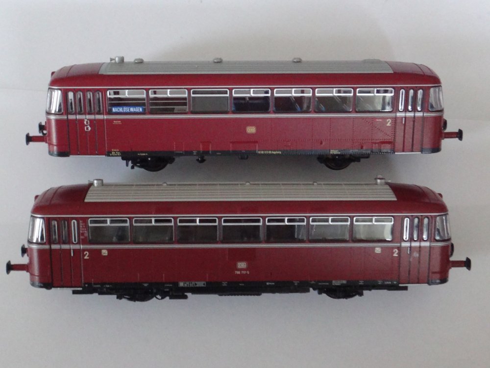 Flot og velkørende skinnebussæt fra Roco, bestående af motorvogn VT 98 og styrevogn VS 98 - begge med puffer og normalkobling, sådan at enkelte godsvogne kan medtages. Gennemkig gennem begge vogne, talrige detaljer vedlagt, herunder faste koblingsstykker. NEM-stik til otte-bens dekoder. Uden lyd. Med førerfigur i det ene førerrum. Model fra epoke IV-V. Lysskift for/bag, interiørbelysning i motorvognen.
