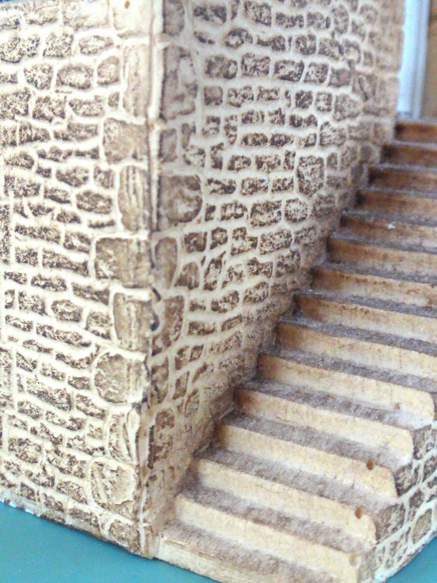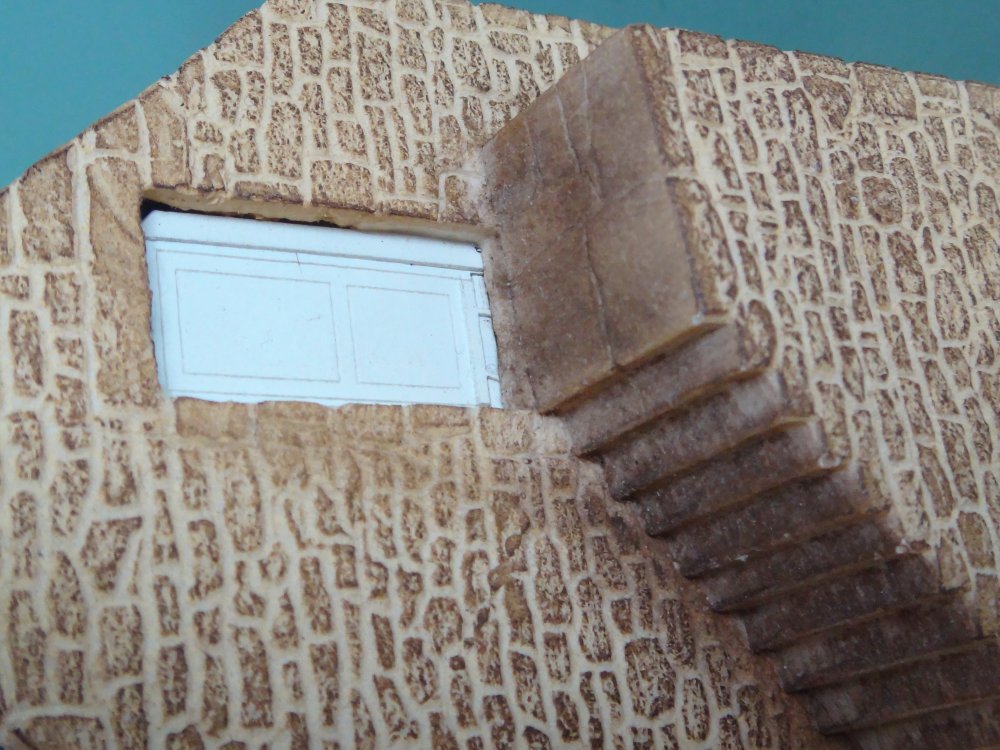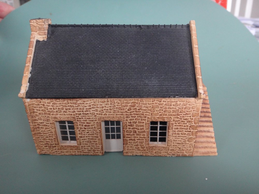Fransk stenhus i resin, flot murvlrk med trasppe, skifertag, eksakt skala 1:87. Forbillede fra Bretagne.. Vinduer og dør med fine sprodser, prototypisk korrekt tykke mure.