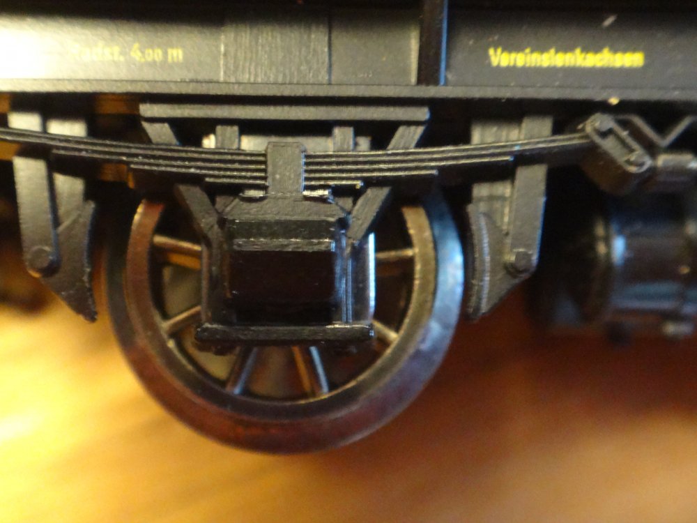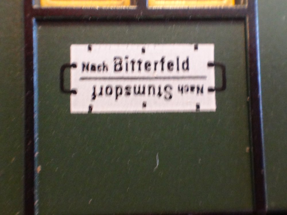 Perfekt stand, men selvsagt en ældre sag. Ingen fejl på vognen, men man kan godt mærke, at vognen er brugt. Æsken (original) har set bedre dage, blandt andet er låget revnet. Udstyret med fortrykte vognløbsskilte Bitterfeld-Stumsdorf.