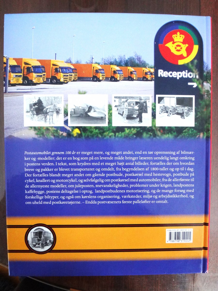 Kæmpestor bog om alle det danske Postvæsenns bilpark - sden var omfattende. Nils Bloch har samlet al tilgængelig information om de oranngegule køretøjer, der prægede landet gennem mere end hundrede år. Utallige illustrationer, også af model-postbiler, et standardværk inden for emnet.