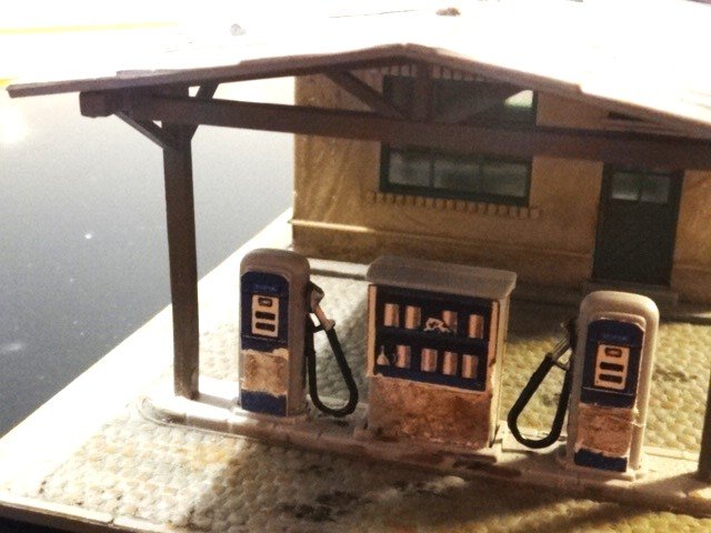 Hyggelig, ældre tankstatuion med værksted. Pola-model i god kvalitet.