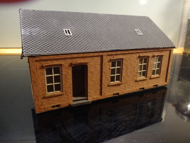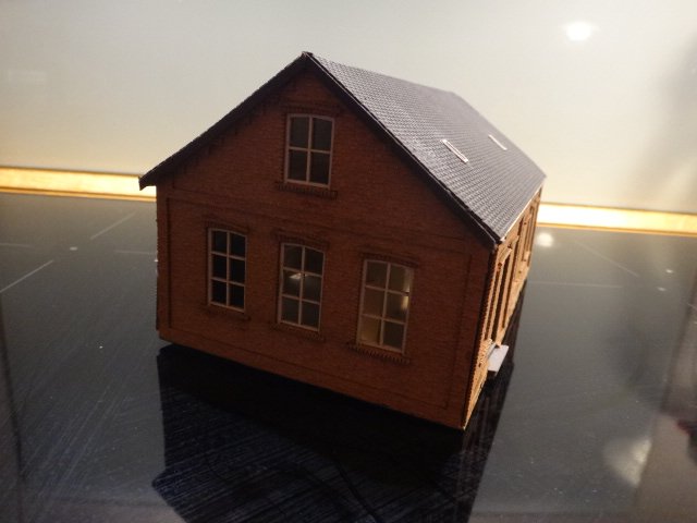 Mellemstor murstensbygning, passende til brugsforening, forsamlingshus, skole, bibliotek og lignende. Kartommodel fra Joswood, Fine, røde mursten. Bygningen er lettere beskadiget, men kan nemt 'opfriskes'. Typisk stationsbyarkitektur.
