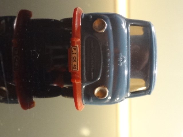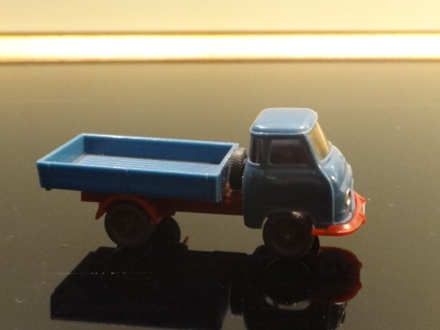 Fin, lille mørkeblå Hanomag-lastvogn fra cirka 1960. Med tyske nummerplader. Uden original emballage. Wiking-model, velholldt.