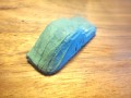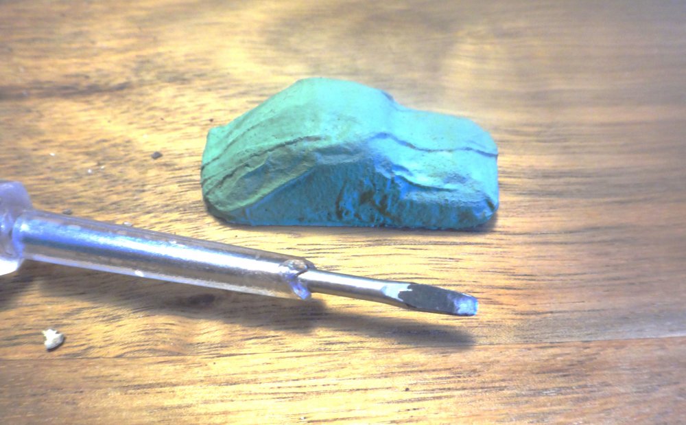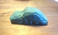 VW 1200 - eller en lignende bil - dækket af mellemgrøn presenning. Velegnet som last på åben godsvogn eller vogn, parkeret og dækket med presennig (mod sne) eller blot som hengemt bil bag en lade eller værksted