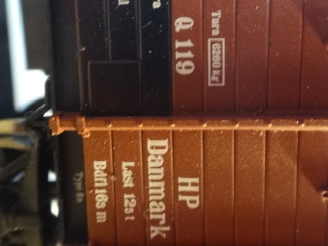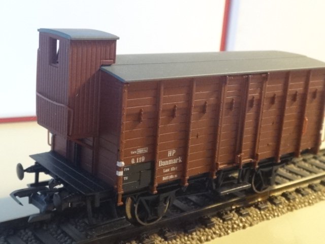 HP 119, en almindelig Q-vognstype med bremsehus fra Hjørring Privatbaner. Velholdt, ubrugt model, harf aldrig været ude at køre.