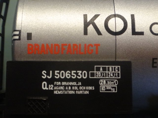 Debn anden vogn er af samme type, men fra udlejningsfirmset ÄB Tankcagnar, Göteborg',ligeledes med omfattende påtryk.