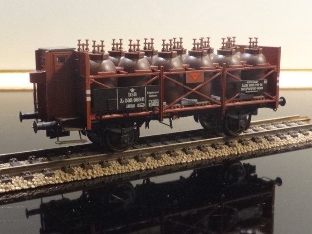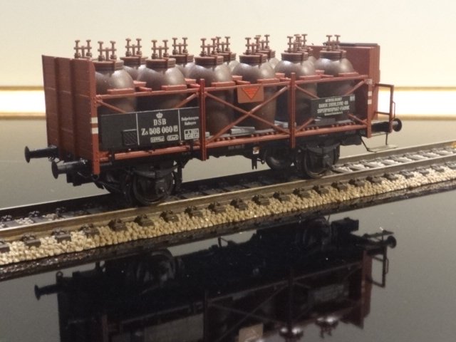 Særdeles flot udgave af den klassiske syrekrukkevogn fra DSB - der er ikke sparet på detaljerne på denne model fra Brawa - faktisk har vognen flere detaljer, end den bevarede museumsvogn hasr - men disse detaljer kan nemt fjernes, hvis man har mod på det (det er de ekstra ventiler på toppen af de se12 beholdere).