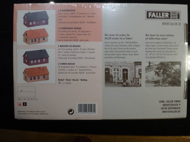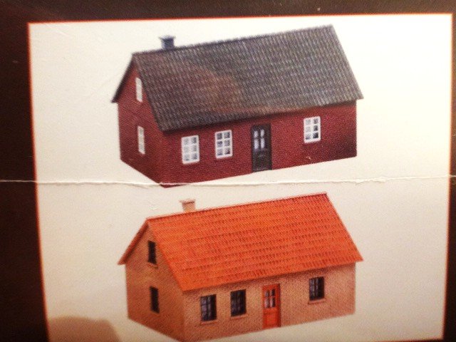 To murstenshuse i samme byggestil, men i forskellige farver. Stilen er meget 'nordisk', og husen kan uden videre passe til et dansk miljø efter bemaling/patinering. Især det gule morstenshus vækker minder og har ebn vis lighed med ældre ledvogterhuse, evt. forkortet med ét fag vinduer.