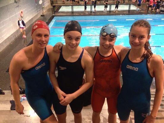 Bare 15 min efter 200 bryst var pigerne i aktion på 4*100fri.