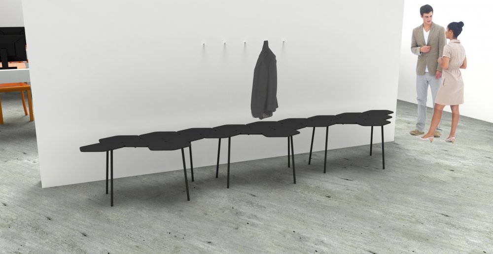 Vores opgave var at lave et entre møbel til fremtidens hjem. Vi kom frem til en bænk, eller et bænke koncept, hvor flere bænke kan sættes sammen til en større enhed. Tanken med dette er at man kan nøjes med at have en enkelt, hvis pladsen er trang, men hvis der til gengæld er rigeligt med plads kan der laves større enheder. Dette er med til at gøre at bænken kan bruges både i det private og i det offentlige.