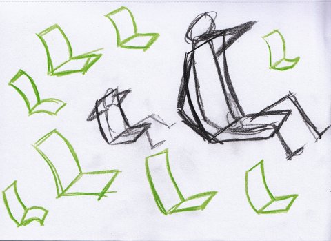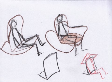 Jeg brugte en del tid på at finde ud af hvad jeg egentlig godt kunne lide, og fandt frem til noget så banalt som at jeg elsker at tænke. Samtidig er jeg meget facineret af stole, så derfor ville jeg lave en "tænke-stol".